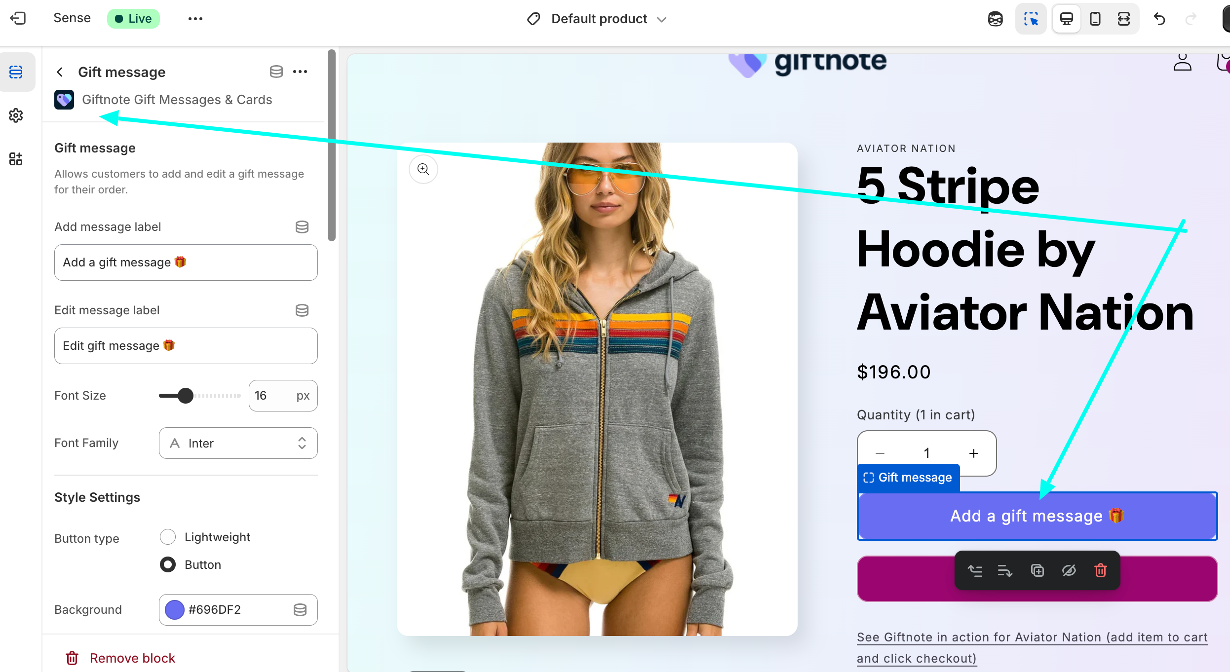 Use this guide to install and customize the Giftnote gift message widget on your product pages, cart page, and cart drawer. You can install it via the Shopify Theme Editor or manually with a snippet.