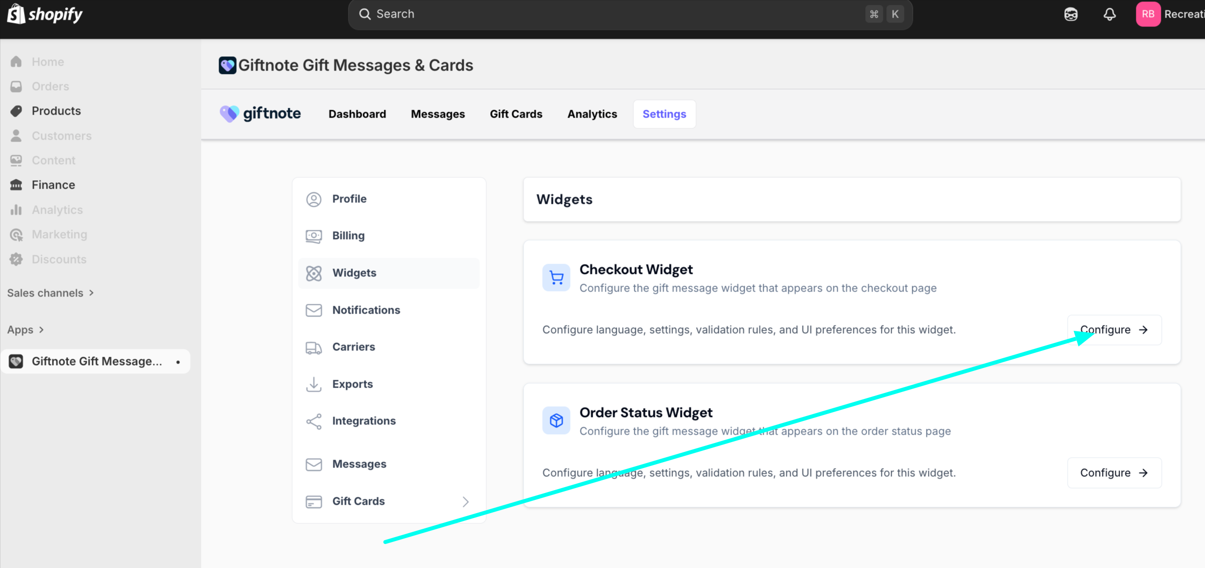 Step 2: Configure Widget Settings in Giftnote