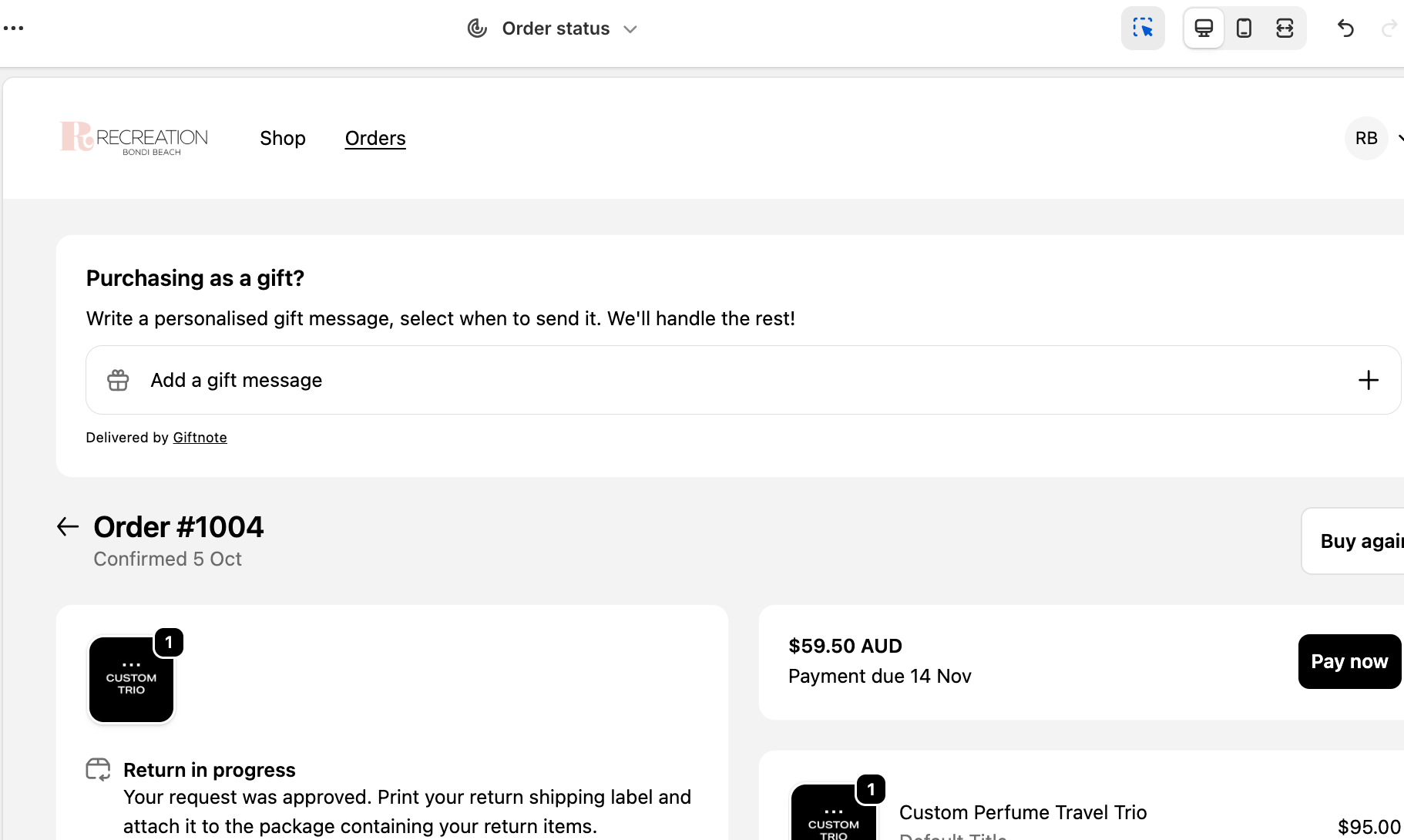 2. Enable Gift Messages on the Order Status Page (All Shopify Plans)